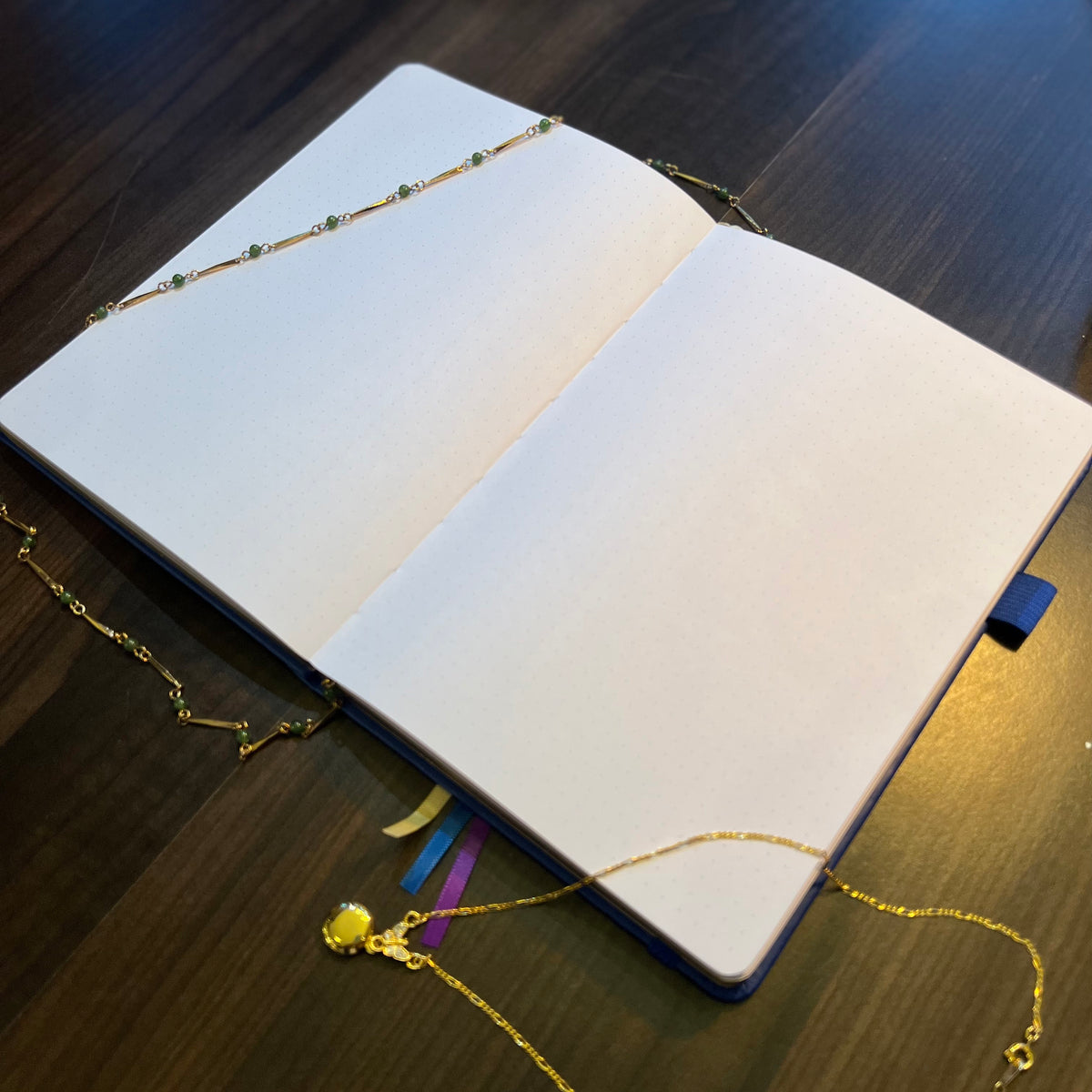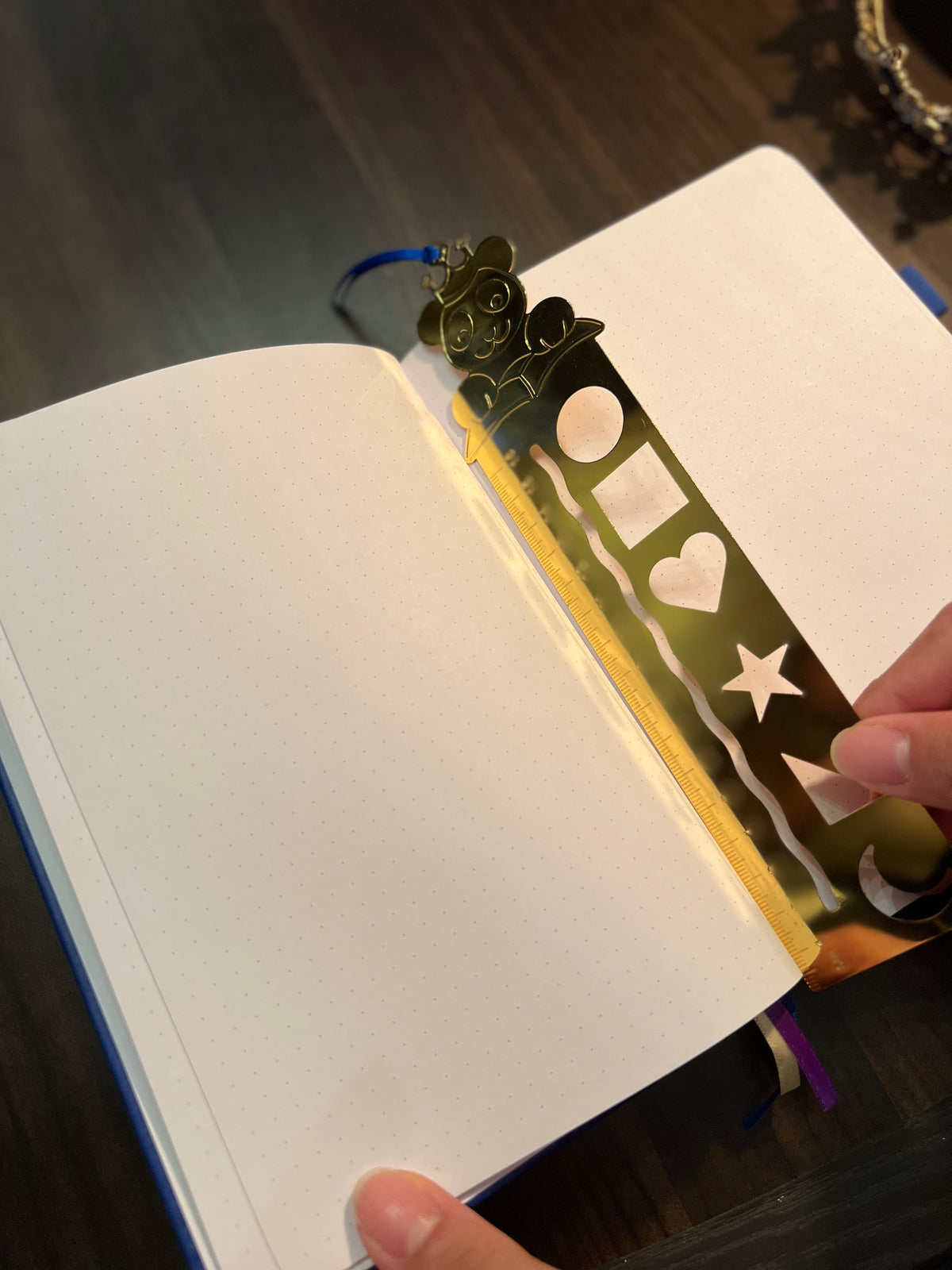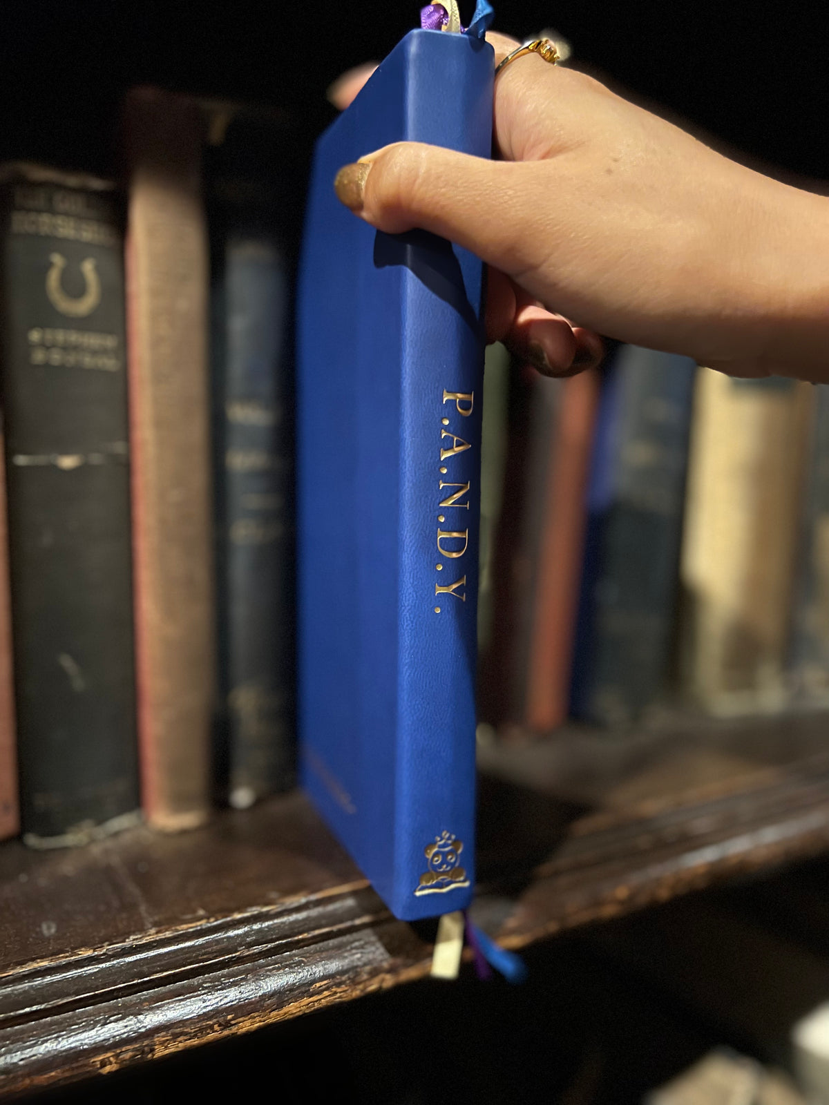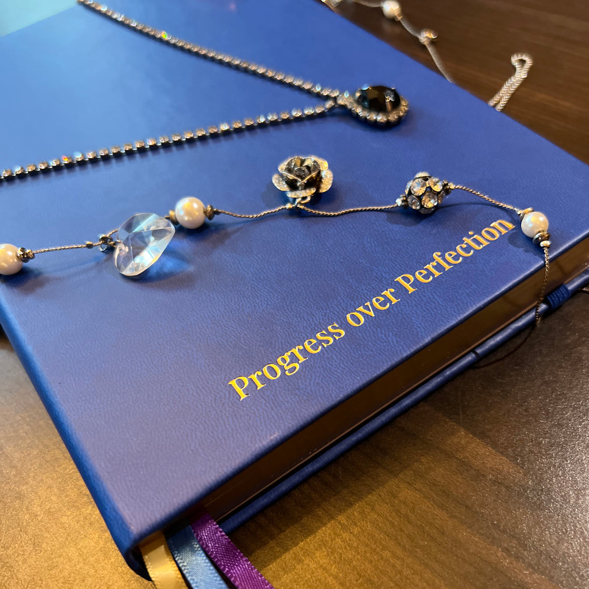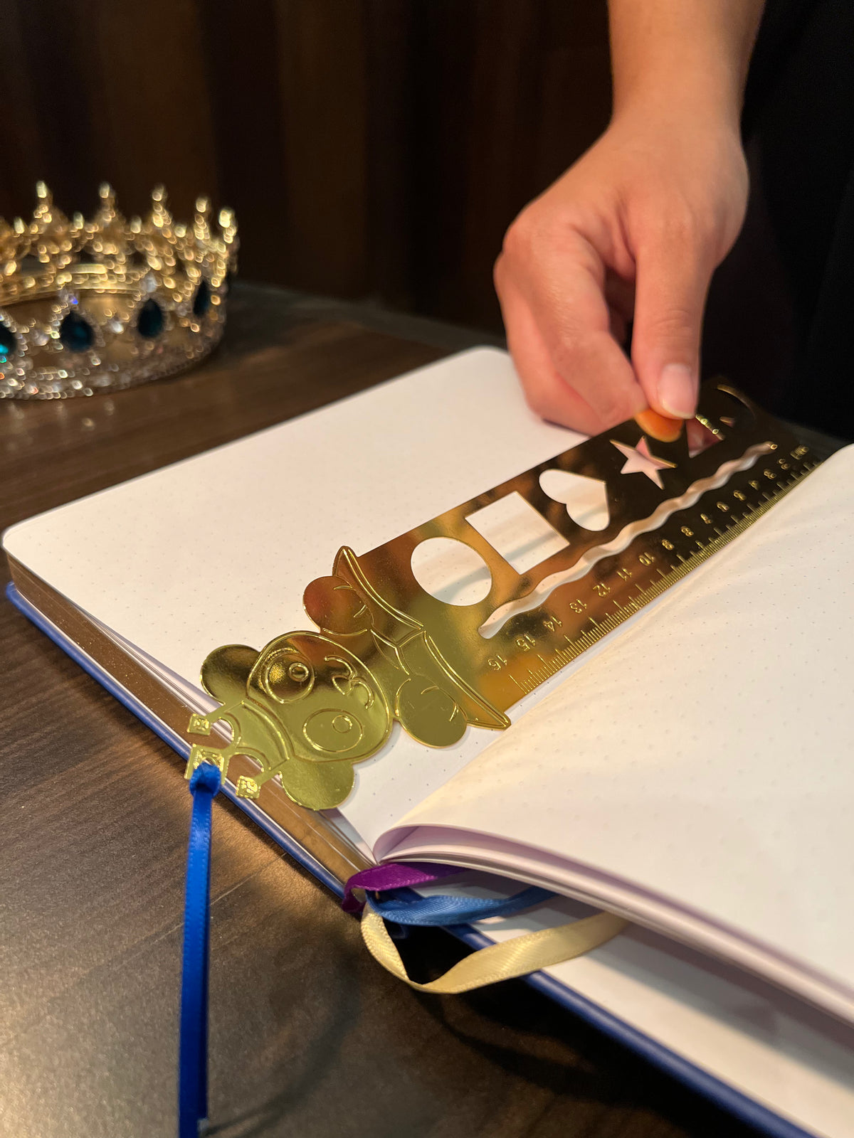 - 3 satin ribbon bookmarks (gold, purple, and navy blue)