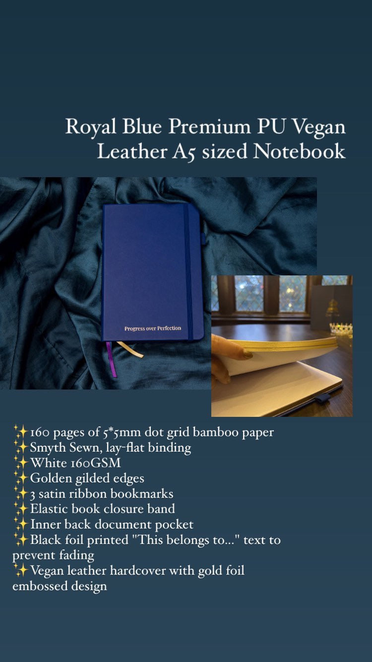 Royal Blue Premium PU Vegan Leather A5 sized Notebook