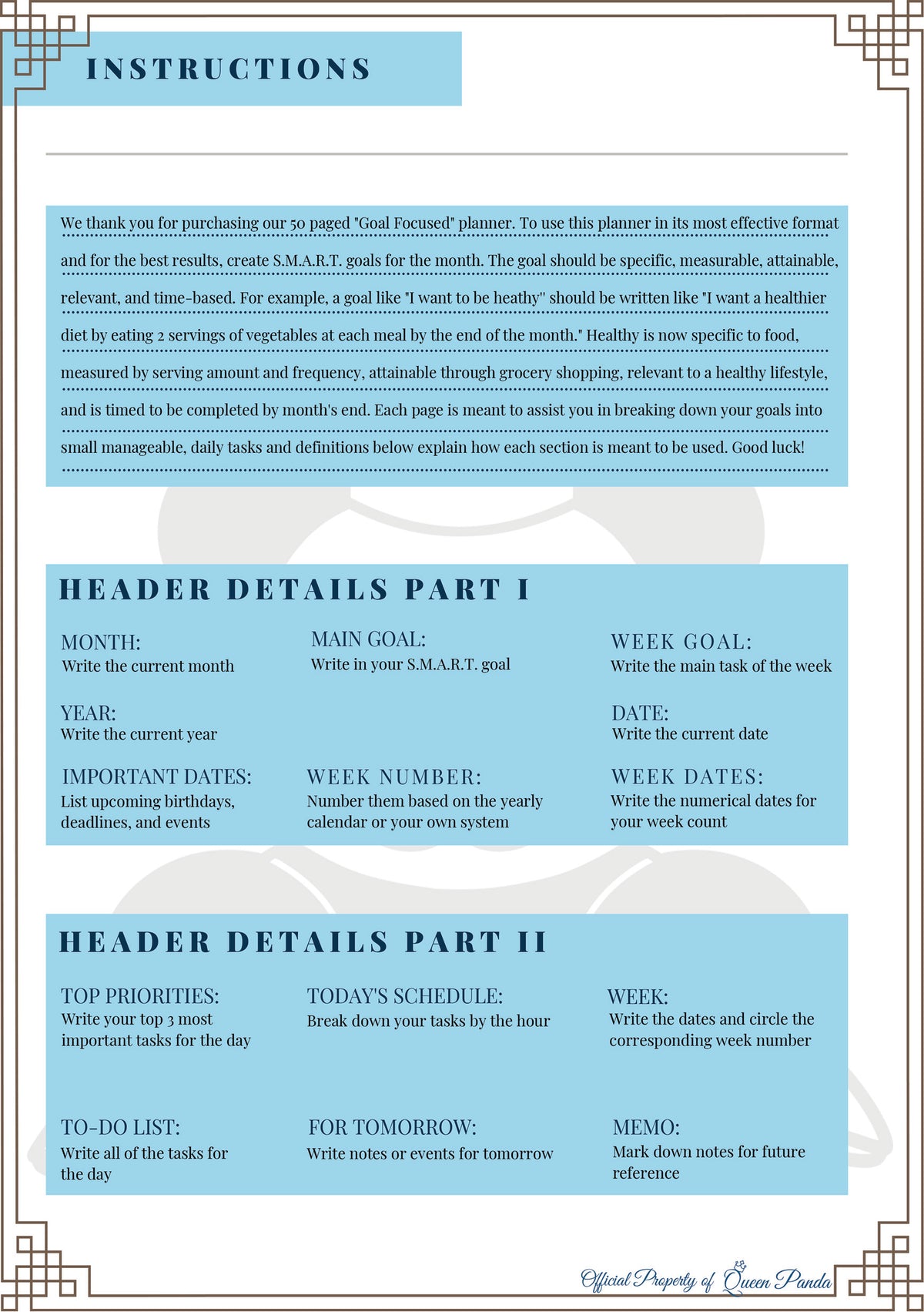 Whether you prefer to print out the template and place it in our Official P.A.N.D.Y. Planner or upload the file to your favorite PDF reader, this planner is versatile and easy to use. So why wait? Get your copy of the Monthly Goal Focused Planner today and start achieving your goals with ease!